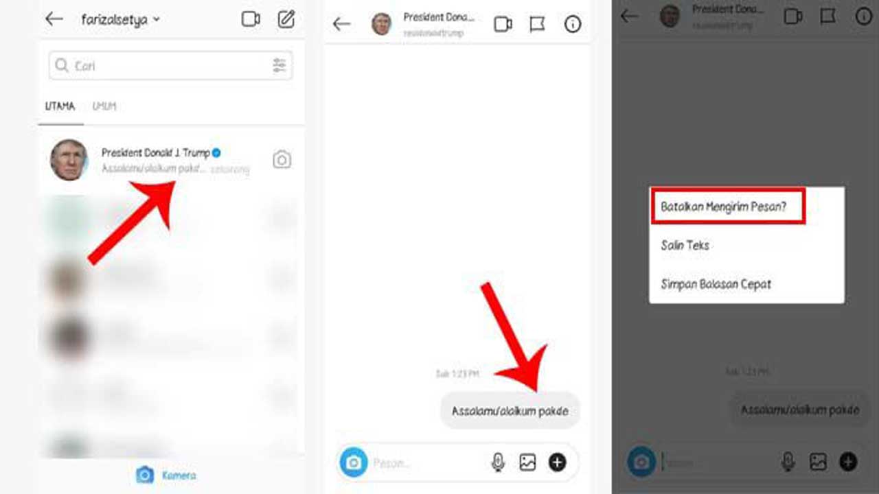 Instagram tidak memberikan notifikasi kepada penerima jika sebuah pesan dibatalkan. Namun, jika penerima sudah membacanya sebelum Anda menghapusnya, mereka tetap akan mengetahui isi pesan tersebut.