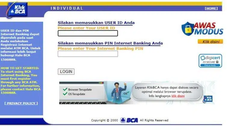 Selain melalui aplikasi mobile banking, Anda juga dapat mengetahui User ID BCA melalui internet banking. Berikut ini adalah langkah-langkahnya: