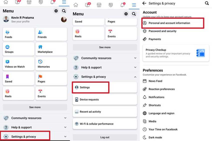 - Ketuk ikon tiga garis di pojok kanan atas, lalu masuk ke Pengaturan dan Privasi.