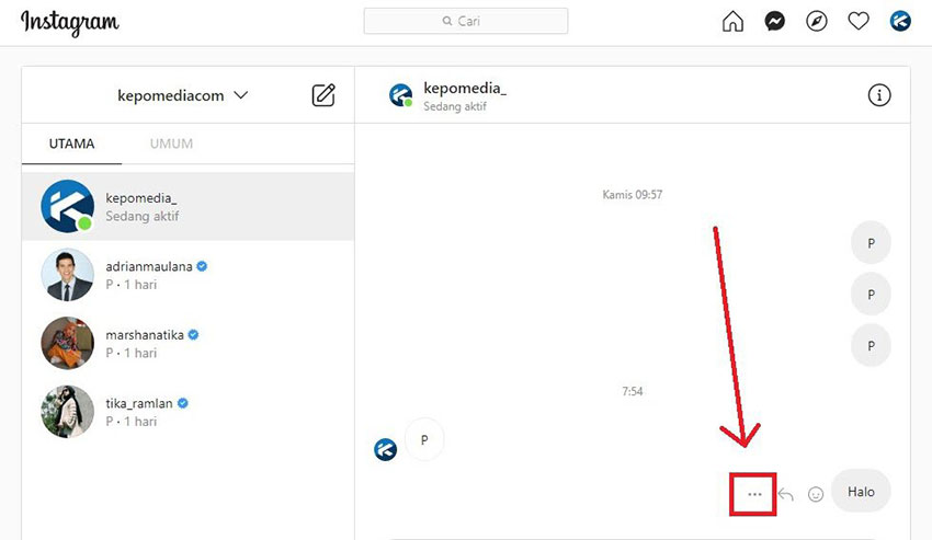 Instagram juga memungkinkan pengguna untuk menghapus pesan melalui versi web. Berikut langkah-langkahnya: