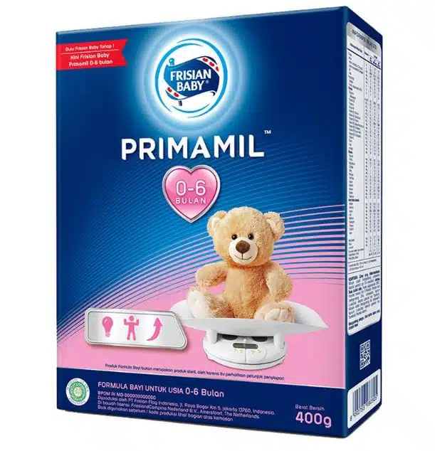 Frisian Baby Primamil 0-6 Bulan mengandung 100% laktosa dengan protein whey yang dominan sehingga mudah diserap oleh si kecil, sehingga aman untuk pencernaan bayi yang belum begitu sempurna. Dan juga kandungan FOS untuk mencegah sembelit dan kolik yang biasanya membuay bayi menangis di malam hari.